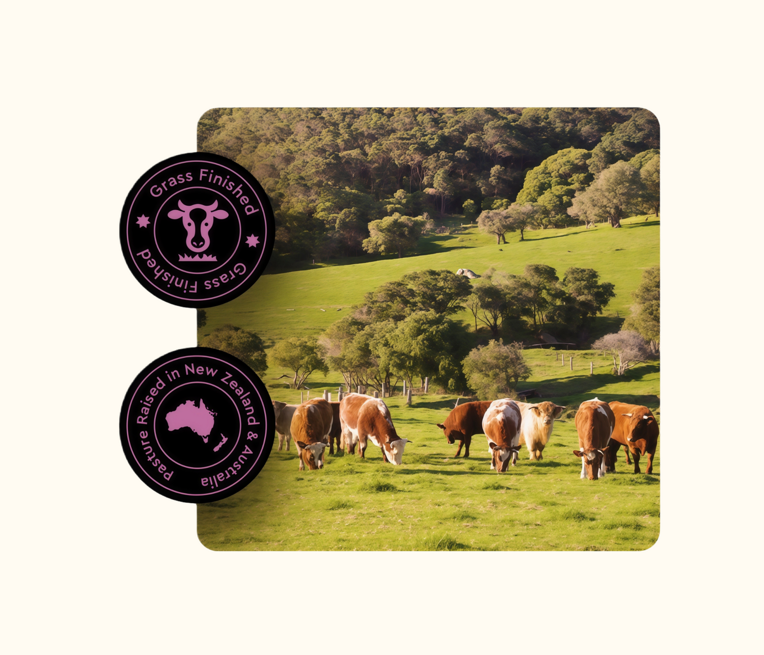 Our product is sourced from the most pristinegrass-fed and grass-finished cattle, exclusivelyfrom New Zealand & Australia. In agriculturalcircles, it's known that the clean air,greenpastures, and animal husbandry in this regionis at the highest level